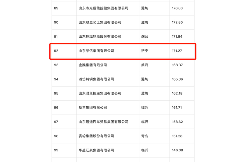 10月27日,由《山東商報(bào)》編制的“2020魯企300強(qiáng)”正式發(fā)布。山東榮信集團(tuán)有限公司以171.27億元營業(yè)收入位列第92位。集團(tuán)已連續(xù)兩年獲得魯企300強(qiáng),也是繼2020年榮膺中國制造業(yè)民營企業(yè)500強(qiáng)、山東民營企業(yè)100強(qiáng)、山東省民營企業(yè)品牌價(jià)值100強(qiáng)、山東省高端化工產(chǎn)業(yè)民營企業(yè)10強(qiáng)及中國石油和化工企業(yè)500強(qiáng)等榮譽(yù)稱號(hào)之后,今年收獲的又一殊榮。