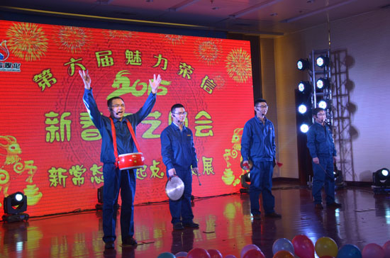 在大家熱烈的掌聲中,司相芳總經(jīng)理作新年致辭。司總首先代表公司向大家表示衷心感謝并致以節(jié)日的祝賀,向奮斗在生產(chǎn)一線的全體員工致以新春的祝福和親切問候。司總講到,公司舉辦文藝晚會(huì),旨在進(jìn)一步凝心聚力,乘風(fēng)破浪,永往直前,挑戰(zhàn)2015。并強(qiáng)調(diào),節(jié)日期間要千方百計(jì)確保安全,確保思想到位、組織人員到位、管理到位、信息溝通到位,徹底排查隱患,確保過一個(gè)安全、愉快、祥和的春節(jié)。最后,司總給大家拜早年。