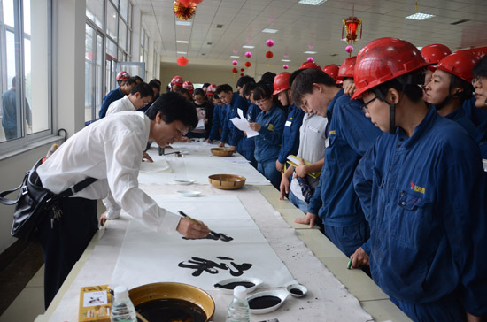 本網(wǎng)訊 6月25日,由鄒城市總工會(huì)、市文聯(lián)聯(lián)合舉辦的慶“七一”優(yōu)秀傳統(tǒng)文化進(jìn)企業(yè)暨職工書畫“百日”巡展活動(dòng)啟動(dòng)儀式在山東榮信煤化有限責(zé)任公司舉行。副市長吳婧出席并講話,市政協(xié)副主席、市總工會(huì)主席姚振西主持儀式,公司副總經(jīng)理高小明代表企業(yè)致辭,相關(guān)鎮(zhèn)街、市直部門、基層單位工會(huì)負(fù)責(zé)同志和職工代表共計(jì)200余人參加活動(dòng)。啟動(dòng)儀式上,公司副總經(jīng)理高小明首先代表企業(yè)致辭,他講到,此次活動(dòng)旨在讓傳統(tǒng)文化更加貼近企業(yè)、貼近基層、貼近生活,用積極健康的文化藝術(shù)鼓舞企業(yè)職工,同時(shí)提高企業(yè)品牌文化效應(yīng),營造企業(yè)文化氛圍,為企業(yè)與文化之間搭建互動(dòng)平臺(tái)。既弘揚(yáng)了中華民族傳統(tǒng)藝術(shù),又為企業(yè)增添了文化色彩,為企業(yè)發(fā)展注入新的文化元素,也擴(kuò)大了書畫藝術(shù)在全市的影響力。隨后吳婧副市長向公司頒發(fā)“濟(jì)寧市模范職工之家”獎(jiǎng)牌,與會(huì)領(lǐng)導(dǎo)為企業(yè)代表贈(zèng)送了《我要學(xué)儒學(xué)》職工學(xué)習(xí)讀本。吳婧在講話中指出,職工書畫“百日”巡展的成功舉辦,對(duì)于進(jìn)一步深化優(yōu)秀傳統(tǒng)文化進(jìn)企業(yè)活動(dòng),大力弘揚(yáng)中華民族優(yōu)秀傳統(tǒng)文化,將起到積極的推動(dòng)作用。希望全市各級(jí)工會(huì)繼續(xù)廣泛開展各類職工文化活動(dòng),進(jìn)一步豐富優(yōu)秀傳統(tǒng)文化進(jìn)企業(yè)載體,引導(dǎo)廣大干部職工從優(yōu)秀傳統(tǒng)文化中汲取營養(yǎng),樹立忠誠、擔(dān)當(dāng)、愛崗、敬業(yè)的職業(yè)操守,推進(jìn)職工隊(duì)伍素質(zhì)全面提升,為建設(shè)和諧幸福新鄒城提供強(qiáng)大的文化支撐和精神動(dòng)力。啟動(dòng)儀式后,與會(huì)人員共同觀看書畫作品展,我市書法家現(xiàn)場潑墨為職工書寫優(yōu)秀傳統(tǒng)文化經(jīng)典名句,現(xiàn)場為職工送出書畫100余幅。據(jù)悉,本次展出的書畫作品接下來還將走進(jìn)山東宏河礦業(yè)集團(tuán)、山東圣琪生物有限公司等企業(yè)進(jìn)行巡展,進(jìn)一步掀起優(yōu)秀傳統(tǒng)文化進(jìn)企業(yè)活動(dòng)的熱潮。