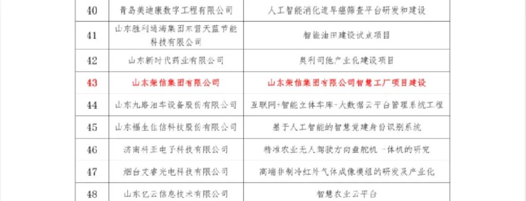 近期,省工信廳公布了第二批“現(xiàn)代優(yōu)勢產(chǎn)業(yè)集群+人工智能”試點示范企業(yè)及項目名單,山東榮信集團成功入選。