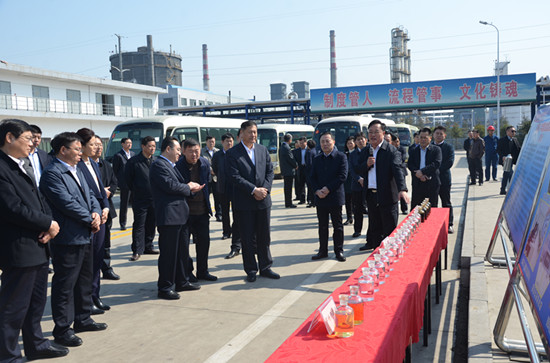 王宏偉一行參觀了集團子公司恒信科技中控室和榮信煤化生產(chǎn)廠區(qū),聽取了集團總工程師杜漢雙關(guān)于恒信科技建設(shè)投產(chǎn)、主要產(chǎn)品及榮信煤化生產(chǎn)經(jīng)營等方面的情況介紹。王書記對于集團近幾年快速發(fā)展取得的成績給予了高度評價,考察團一致認為集團近幾年積極適應(yīng)經(jīng)濟發(fā)展新常態(tài),在安全環(huán)保、生產(chǎn)經(jīng)營、隊伍建設(shè)、后勤保障等方面工作亮點突出,在煤化工行業(yè)領(lǐng)域樹立了典范。下步將加強兗州本地企業(yè)與集團的溝通、聯(lián)系和交流,共同推進兩地經(jīng)濟社會健康和諧發(fā)展。