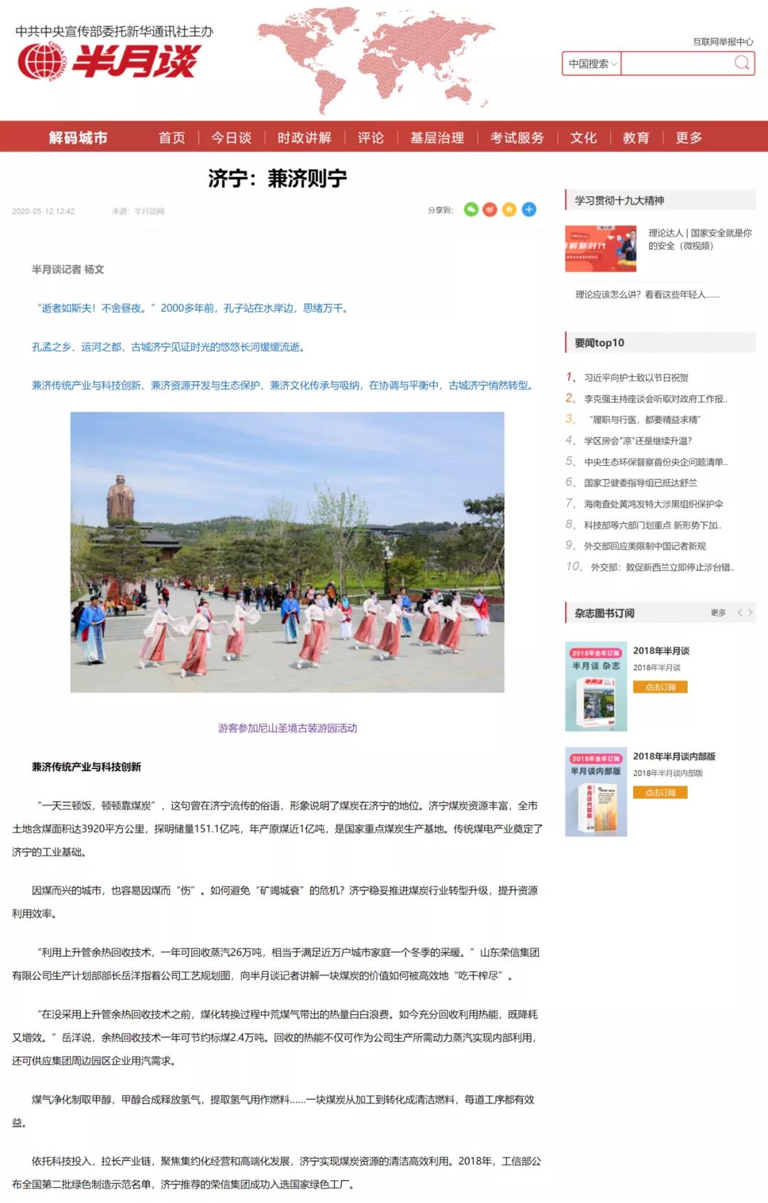 5月12日,黨刊《半月談》官網(wǎng)平臺(tái)刊載文章《濟(jì)寧:兼濟(jì)則寧》,在文章中,以第一個(gè)標(biāo)題“兼濟(jì)傳統(tǒng)產(chǎn)業(yè)與科技創(chuàng)新”,對(duì)山東榮信集團(tuán)節(jié)能降耗、綠色循環(huán)發(fā)展和大力發(fā)展氫能源,依托科技投入,拉長(zhǎng)產(chǎn)業(yè)鏈,聚焦集約化經(jīng)營(yíng)和高端化發(fā)展,從而實(shí)現(xiàn)煤炭資源清潔高效利用的成功做法和榮信集團(tuán)成功入選國(guó)家綠色工廠給予點(diǎn)贊!把榮信集團(tuán)作為資源型城市轉(zhuǎn)型升級(jí)和新舊動(dòng)能轉(zhuǎn)換的典范企業(yè)加以報(bào)道!