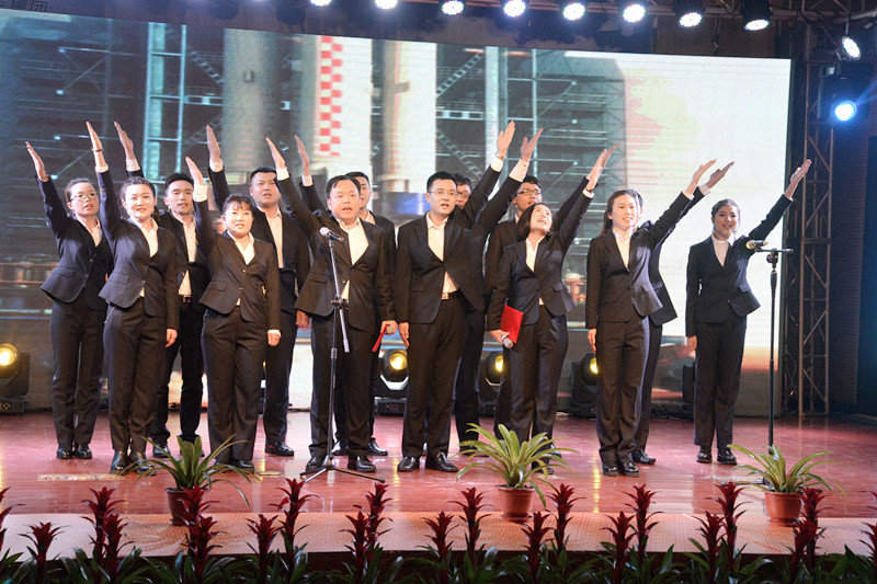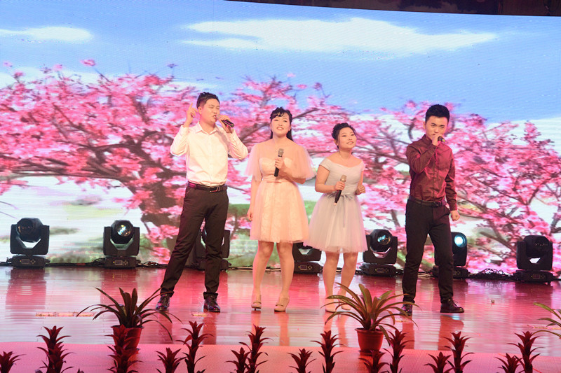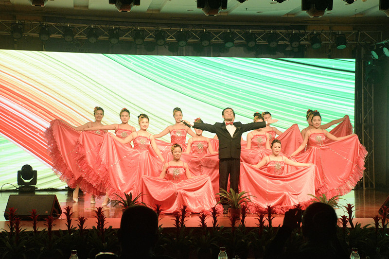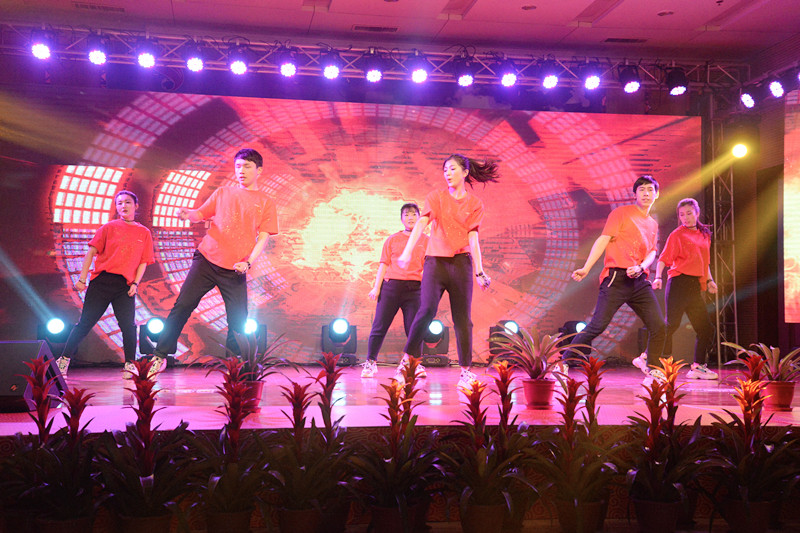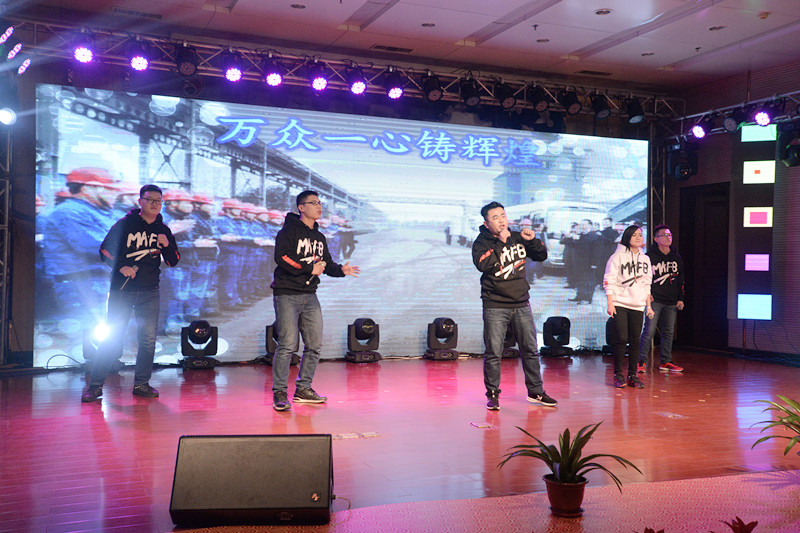 晚會(huì)以“新時(shí)代、新?lián)?dāng)、新發(fā)展”為主題,形式多樣、內(nèi)容豐富、精彩紛呈。晚會(huì)以激情高昂大氣的歌伴舞《陽(yáng)光路上》拉開(kāi)了帷幕。隨后歌曲《中國(guó)范兒》、《冰糖葫蘆》、《站在草原望北京》、《年輕的朋友來(lái)相會(huì)》等表演,熱情謳歌了新時(shí)代新生活新夢(mèng)想。琵琶重奏《送我一支玫瑰花》、喊麥《夢(mèng)想起航》、三句半《贊榮信》、熒光舞《舞動(dòng)激情》、群口相聲《誰(shuí)的功勞大》、小品《榮信情緣》等節(jié)目,給觀眾帶來(lái)了耳目一新的視聽(tīng)享受,贏得現(xiàn)場(chǎng)觀眾的陣陣掌聲。最后,晚會(huì)在激情昂揚(yáng)的歌曲《不忘初心》中圓滿(mǎn)落下帷幕。演出結(jié)束后,總經(jīng)理司相芳、副總經(jīng)理高小明、總工程師杜漢雙、副總經(jīng)理李繼新等集團(tuán)領(lǐng)導(dǎo)上臺(tái)與演職人員親切握手并合影留念,共同祝賀晚會(huì)取得圓滿(mǎn)成功。