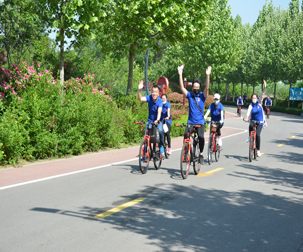 本次參與騎行活動的人員統(tǒng)一穿著印有集團公司LOGO的Polo衫,騎行的單車采用榮信建廠十周年統(tǒng)一發(fā)放的自行車,騎行路線主要是沿太白湖環(huán)湖騎行一周,路程約13km。為確?;顒禹樌M行,公司在騎行沿途設置了補水站點,并安排若干后勤保障人員提供補給服務。