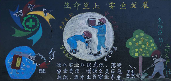 黑板報展覽“展”出新時代榮信人“生命至高無上,安全責任為天”的安全理念。為擴大宣傳覆蓋面,集團要求各部門制作安全月黑板報。各部門積極準備,各展所長,利用美術字、圖畫等藝術形式對黑板報進行了精心的設計,主題鮮明,內容豐富,圖文并茂,全方位、多角度的宣傳了安全生產(chǎn)知識。同時,各部門制作了安全警示標語,在各區(qū)域作業(yè)現(xiàn)場進行懸掛,營造了“人人講安全、事事為安全、時時想安全、處處要安全”的良好氛圍。