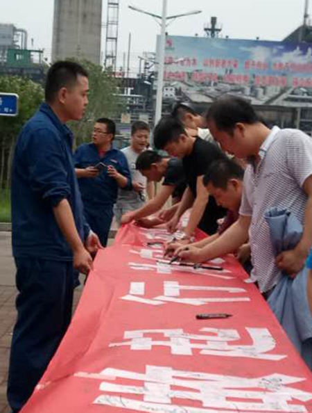 千人條幅簽名活動“簽”出了員工的一份安全責任和承諾。為營造安全生產(chǎn)月活動氛圍,集團在廠區(qū)長安路北、動力分廠化學水南側舉行了千人條幅簽名活動?;顒右浴安榛技m違從我做起,行為安全時刻牢記”為主題,利用員工早晨上下班時間,讓倒班員工都能參與到活動中來,最大限度的提高員工的安全意識和自我保護意識。