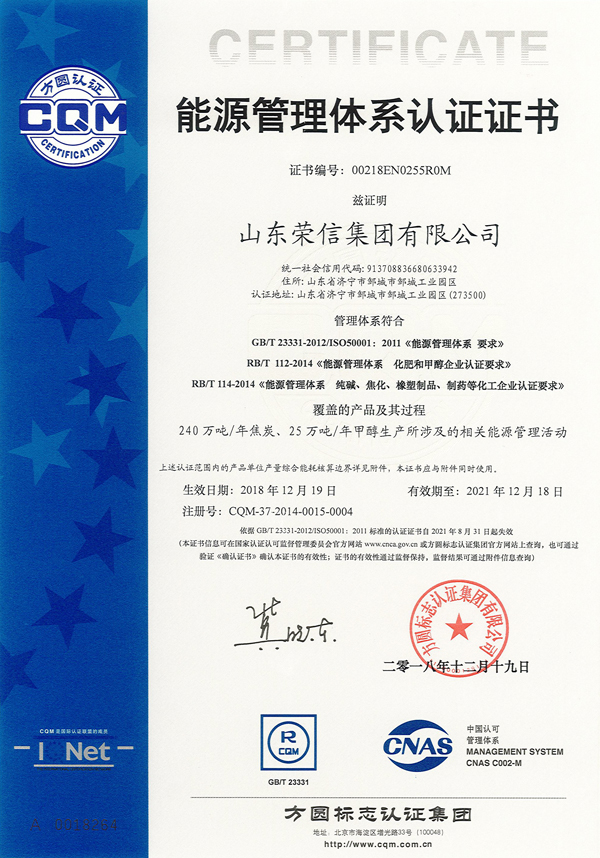 近日,山東榮信集團(tuán)有限公司順利通過(guò)了方圓標(biāo)志認(rèn)證集團(tuán)有限公司組織的能源管理體系審核。