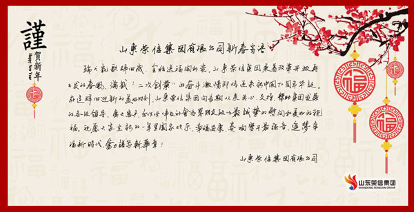 瑞犬凱歌辭舊歲,金豬送福鬧新春。山東榮信集團(tuán)乘著改革開(kāi)放再出發(fā)的春風(fēng),滿(mǎn)載“二次創(chuàng)業(yè)”的奮斗激情,即將迎來(lái)新中國(guó)70周年的華誕。在這辭舊迎新的美好時(shí)刻,山東榮信集團(tuán)向長(zhǎng)期以來(lái)關(guān)心、支持、幫助集團(tuán)發(fā)展的各級(jí)領(lǐng)導(dǎo)、廣大客戶(hù)、合作伙伴及社會(huì)各界朋友致以最誠(chéng)摯的感謝和崇高的敬意!向全體榮信家人及其家屬表示最衷心的慰問(wèn)和美好的祝福!祝愿大家在新的一年,闔家歡樂(lè),幸福安康,奏響實(shí)干最強(qiáng)音,追夢(mèng)幸福新時(shí)代,奮力譜寫(xiě)新華章!