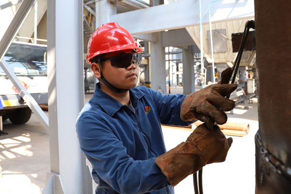 他們滿面灰塵,卻擋不住前行的腳步,他們滿眼疲憊,卻擋不住對維修的追求,白色板房便是他們的家。他們奔赴檢修現(xiàn)場,戰(zhàn)高溫、斗酷暑,上框架、爬豎梯,總是在生產(chǎn)線上摸爬滾打,汗水如雨飄灑,哪兒需要他們,他們就在哪兒出現(xiàn)。他們是機修車間的“藍(lán)領(lǐng)驕子”,是檢修現(xiàn)場的主力軍。安全員彭帥就是這些檢修將士中出色的一個。