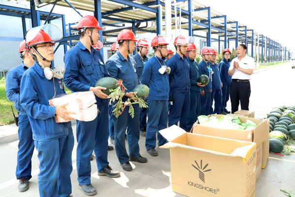 活動(dòng)中,公司相關(guān)領(lǐng)導(dǎo)詳細(xì)詢問了防暑降溫工作情況,叮囑大家要提高自我保護(hù)意識,采取有效措施,預(yù)防中暑突發(fā)事件發(fā)生。并將茶葉、毛巾、西瓜、雪糕等慰問品親自發(fā)放到他們手中,溫暖著每一名職工的心,為高溫下恪盡職守的廣大職工增添了絲絲清涼,極大地調(diào)動(dòng)了大家的工作積極性。