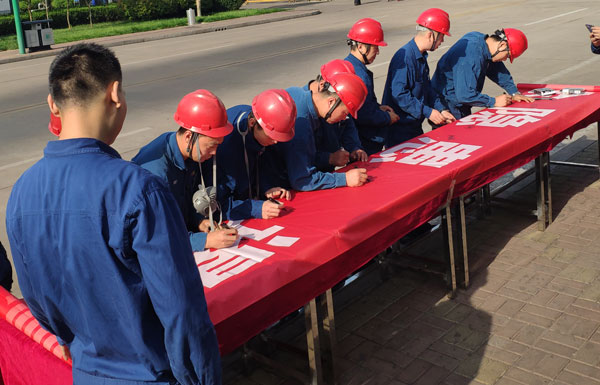6月初,集團安委會制定并下發(fā)了《關于開展2019年“安全生產月”活動的通知》,各單位積極行動,廣泛動員。開展了安全簽名活動,員工們紛紛許下安全承諾;通過橫幅、專題展板、電子顯示屏等各種載體,進行安全知識宣傳,提高員工的安全意識。6月中旬,集團舉辦了2019年基層管理人員安全培訓活動,500多名基層管理人員分批次參加培訓。課堂上,安全員結合實際,做了深入淺出、精彩生動的安全知識講解,參訓人員認真記錄,仔細領會。通過培訓,有力提高了基層管理人員的安全素養(yǎng),形成了“我要安全、我會安全、我懂安全、我能安全”的良好安全生產氛圍。
