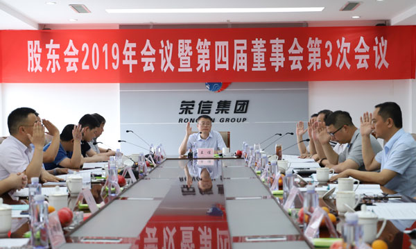 魅力七月流光溢彩,激情夏日生機(jī)蓬勃。7月6日上午,山東榮信集團(tuán)2019年股東會(huì)會(huì)議、第四屆董事會(huì)第3次會(huì)議和第四屆監(jiān)事會(huì)第3次會(huì)議在榮信集團(tuán)研發(fā)中心召開。叢國(guó)慶同志代表沙鋼集團(tuán)、司相芳同志代表恒信集團(tuán)出席會(huì)議,集團(tuán)全體董事、監(jiān)事及非董事的總經(jīng)理層成員出席(或列席)會(huì)議,王謹(jǐn)董事長(zhǎng)主持會(huì)議。