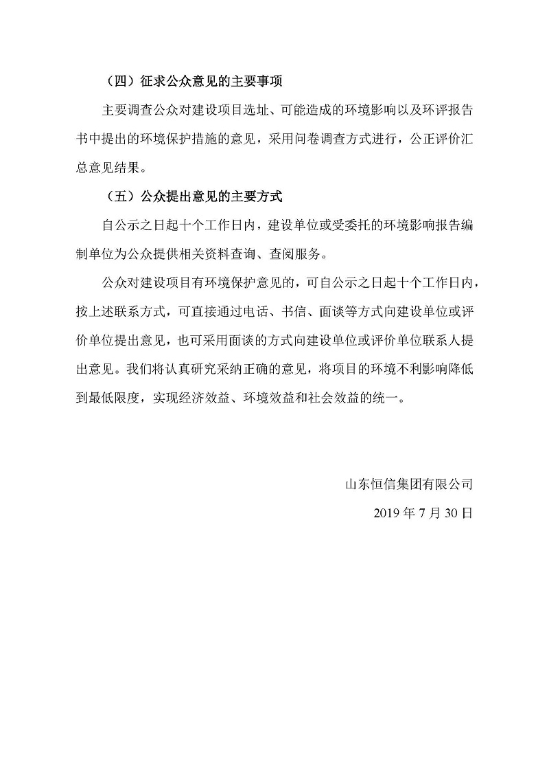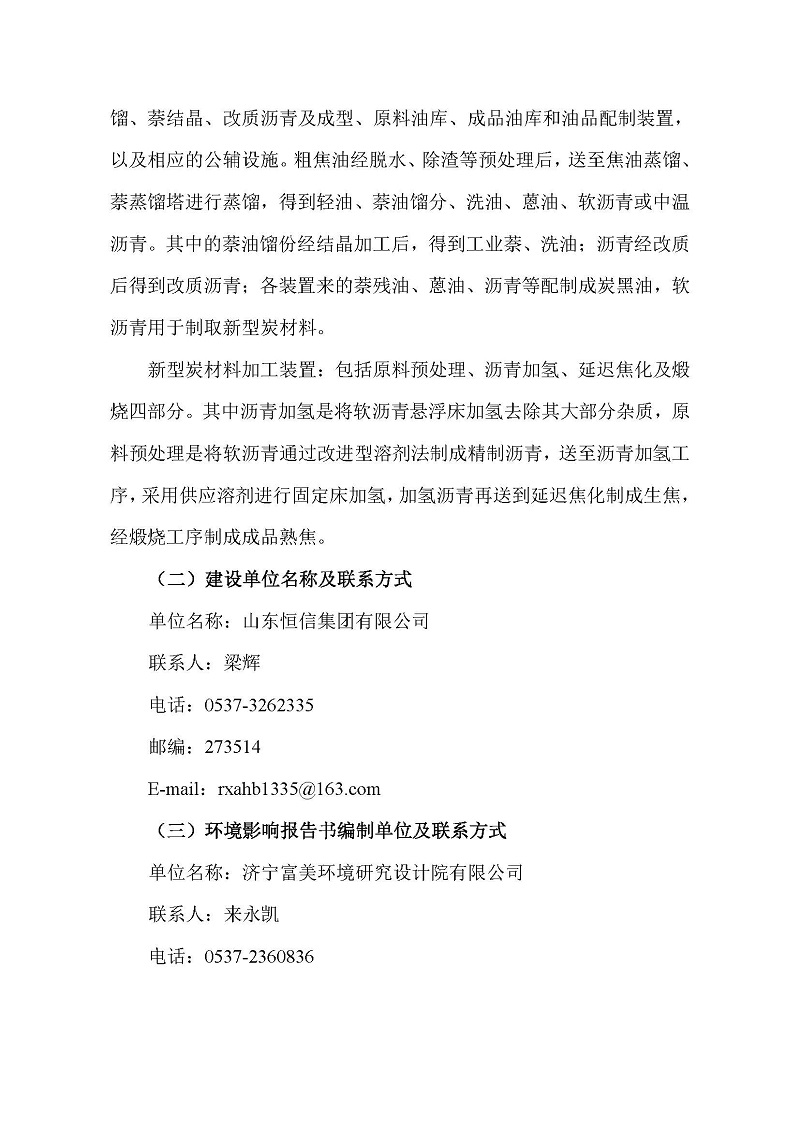 山東恒信集團(tuán)有限公司10萬噸/年新型炭材料及高溫煤焦油資源綜合利用項(xiàng)目環(huán)境影響評價(jià)公眾參與第一次公示