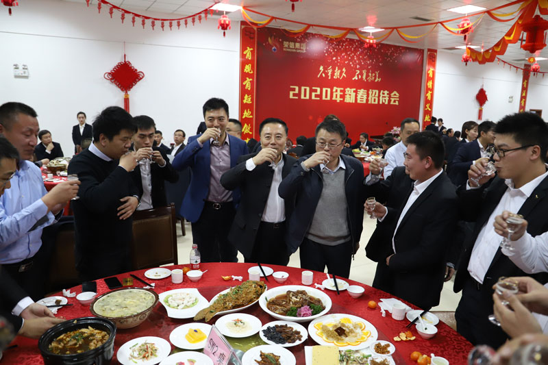 山東恒信集團董事長、山東榮信集團總經理司相芳在招待會上發(fā)表熱情洋溢的致辭。他首先向大家致以節(jié)日的問候和美好祝福,向堅守工作崗位的各位員工表示親切的慰問!他說,2019年是極不平凡的一年,經濟復蘇緩慢,對煤化工行業(yè)的沖擊很大,生產形勢非常嚴峻。我們戰(zhàn)勝各種挑戰(zhàn),堅持走綠色循環(huán)發(fā)展之路,大力實施新舊動能轉換,著力轉型升級,持續(xù)加大投入,進行多項大型節(jié)能環(huán)保技改工程,保持了同行業(yè)最好水平,新獲地方、行業(yè)的諸多殊榮,是新型煤化工高質量發(fā)展的標桿企業(yè)與能效領跑者。他表示,展望2020年,各種不確定因素增多,煤化工企業(yè)面臨的困難更加復雜多變。企業(yè)只有壯大規(guī)模,提質增效,才能在瞬息萬變的競爭中行穩(wěn)致遠。積極爭取發(fā)展要素,全面鋪開新能源新材料建設項目,再謀發(fā)展,再上規(guī)模,延伸產業(yè)鏈條,大力發(fā)展綠色循環(huán)經濟,加快新舊動能轉換,繼續(xù)領跑,做綠色高質量發(fā)展的行業(yè)標桿。他希望大家,在新的一年里,要以“今天再晚也是早,明天再早也是晚”的緊迫感,拉高標桿勇爭先,擼起袖子加油干,在增量增效、提質增效、降本增效上“當標桿”,在工作創(chuàng)新上“做表率”,在成長成才上“做標兵”,在業(yè)績比拼立功創(chuàng)模上“扛紅旗”,共創(chuàng)集團更加輝煌美好的明天!